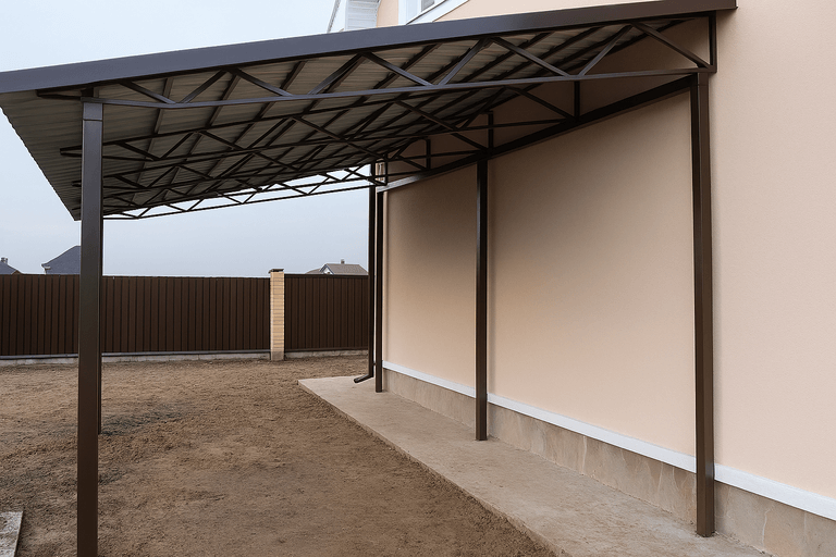 Навес для автомобиля из металлопрофиля — это не просто укрытие от осадков, а функциональное решение для организации пространства на участке. Консультация с нашим специалистом поможет оценить технические особенности вашего участка и выбрать оптимальную конструкцию.